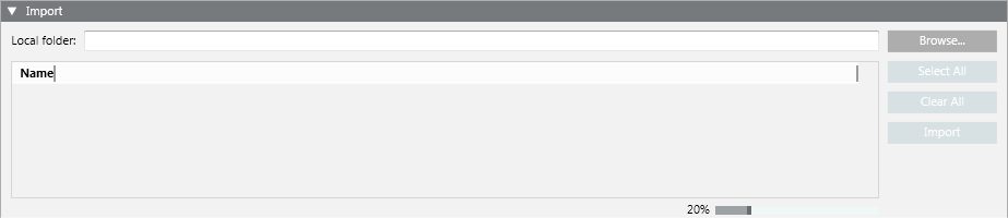 Import | Start the import of the icons from the local folder. This button becomes available when at least one icon is selected. |