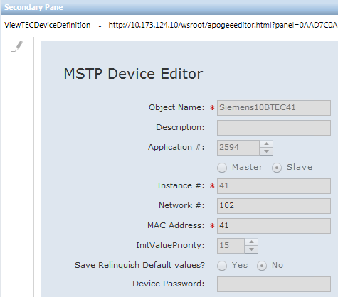 This editor displays the properties of the field level network device selected in the System Browser.