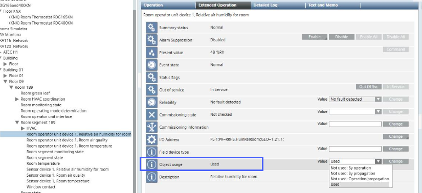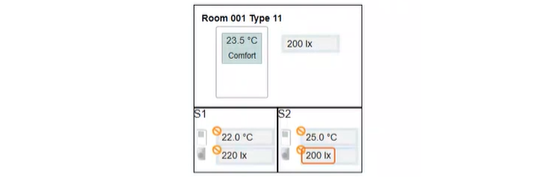 Scenario: A change in room configuration means that room operator unit S1 or S2 is no longer needed or needed again by a room segment. Enabling or disabling the device can be accomplished in Desigo CC without the engineering tool.