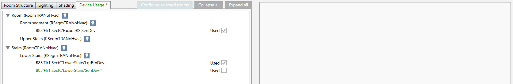 If cleared, no additional configurations are required in the room operator unit for Reconfigure Lighting Control and Reconfigure Shading Control. This simplifies re-selection at a later date if the segment if re-added to the original room.