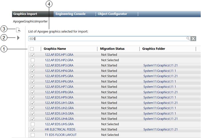 2 | Start Migration Initiates the process of importing the APOGEE graphics into the management station. |