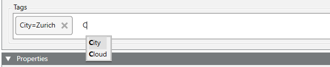 NOTE: When you are typing a letter, existing tags are listed and can be selected. The values must be entered separately.