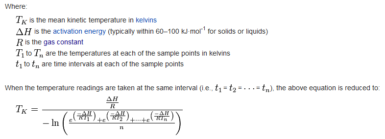 MKT differs from other means (such as a simple numerical average or arithmetic mean) because higher temperatures are given greater weight in computing the average. This weighting is determined by a geometric transformation—the natural logarithm of the temperature number.
