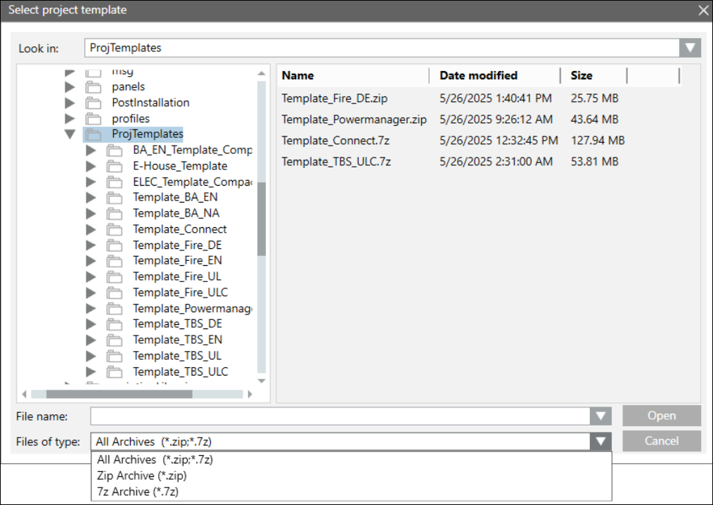 to create a project from a compressed project template. In the Select project template dialog box, select the desired compressed template of .7z or .zip format from the ProjTemplates folder and click OK.