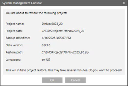 - Click OK to restore the selected project/project template.