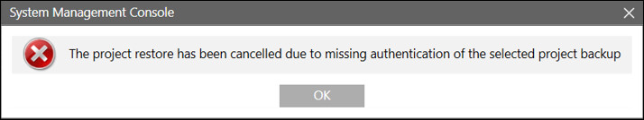NOTE: If the password is entered incorrectly on the second attempt, the project restoration process is cancelled.